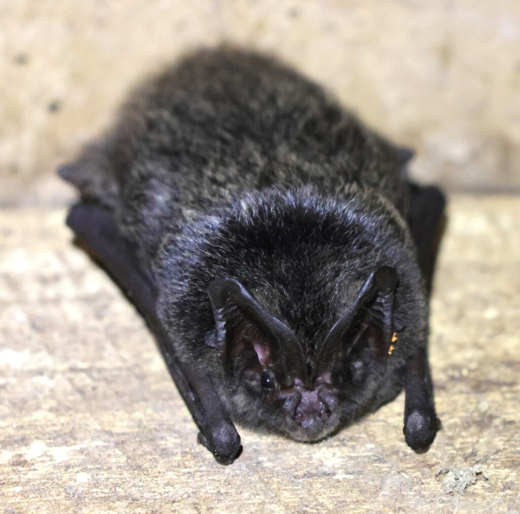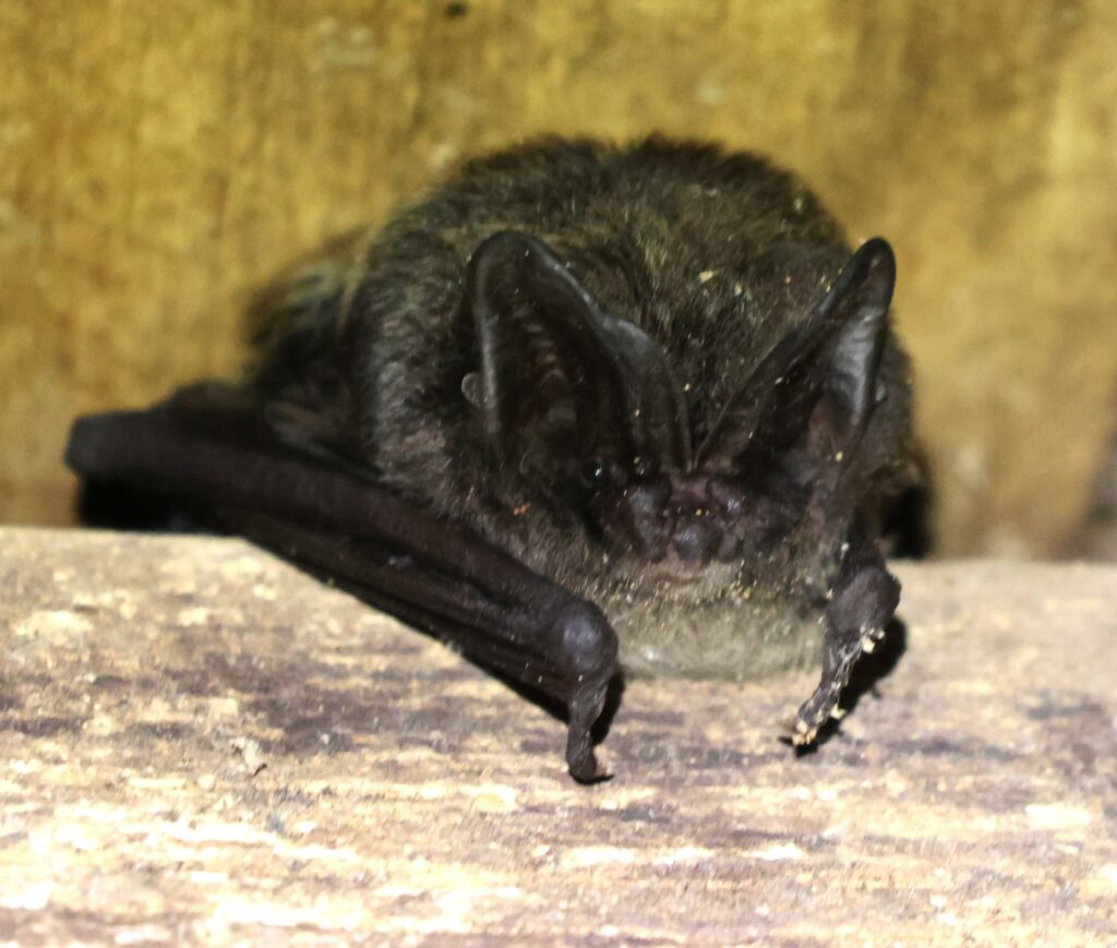 • le même jour, l’étable accueille deux barbastelles d’Europe. L’une et l’autre , images ci-dessous, accrochées à la même poutre, mais pas sur la même face.