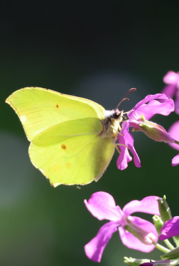 - Les citrons dans le jardin ont des ailes de papillon ; voici, en fin d’après-midi, gonepteryx rhamni, se délectant du nectar d’une lunaire.