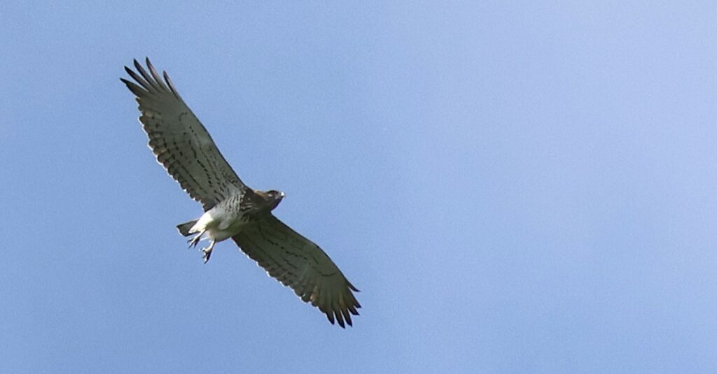 - Depuis quelques jours, en deuxième partie d’après-midi, deux circaètes « Jean le Blanc » font montre de leur adresse en vol.